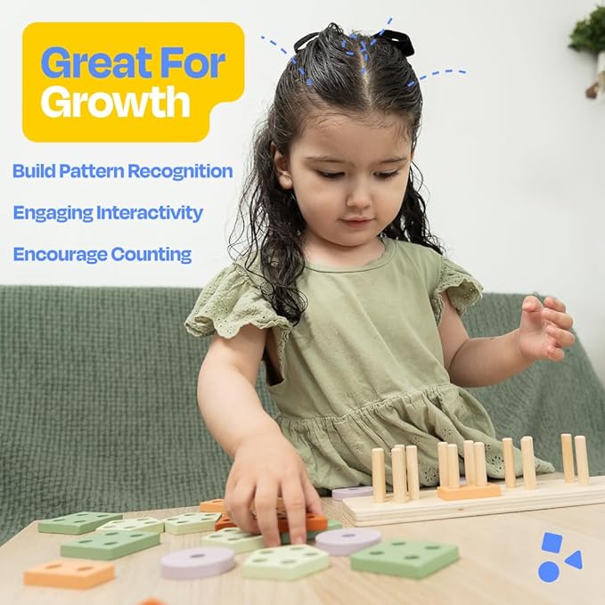 - Adaptable for Growing Toddlers: Excellent for both stacking toys and Montessori toys, this versatile set grows with your child, offering new challenges as they develop. It’s an all-in-one stacking puzzle and sorting blocks experience.
