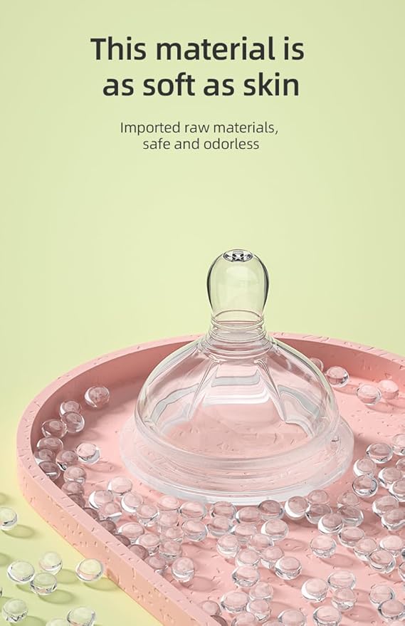 - ★Transition from Breast with Breast-Shaped Nipple: With a breast shape, the nipple mimics the shape and feel of a breast to give babies a sense of satisfaction and security to ease the transition from breast to bottle; Made of food-grade silicone, the nipples are made tens of thousands of pulling experiments and can protect baby’s gums well;