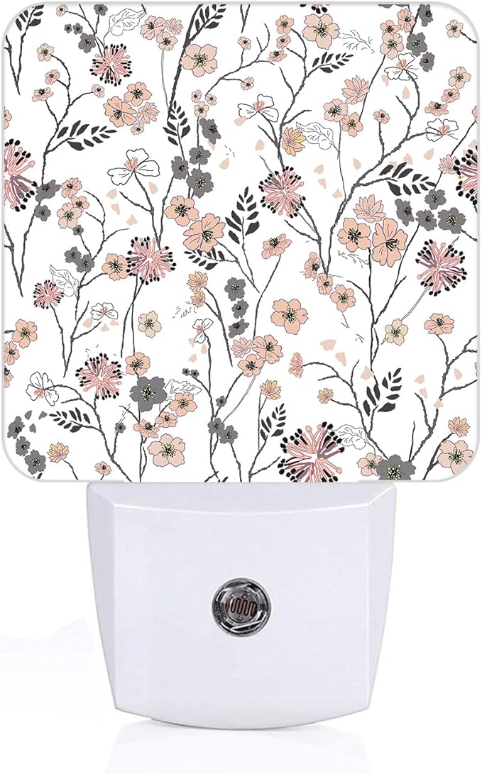 Vintage Peach Pink Floral Night Light,Plug Into Wall for Boys Girls Bedroom Decorative Square Night Light Lamp 0.5w Sleep Friendly