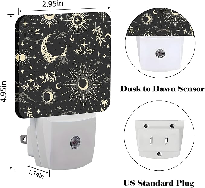 Moon and Sun Night Light,Plug-in Night Lights with Dusk-to-Dawn Sensor for Stairway,Hallway,Bedroom Sleep Friendly Ideal for Women/Girls/Boys Gift,0.5w