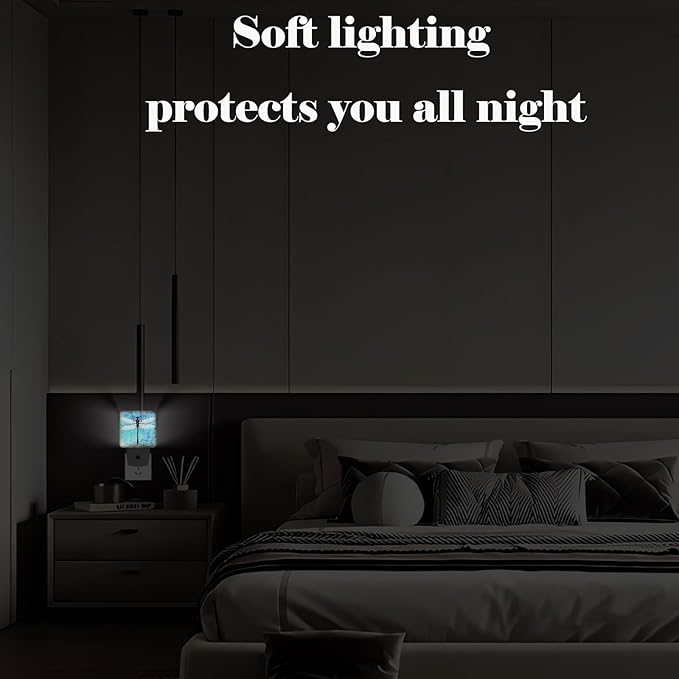Blue Vintage Dragonfly Night Light,Plug Into Wall Decor for Stairway,Hallway,Kitchen,Dusk to Dawn Sensor Nightlights for Boys/Girls/Women/Men Room Gifts