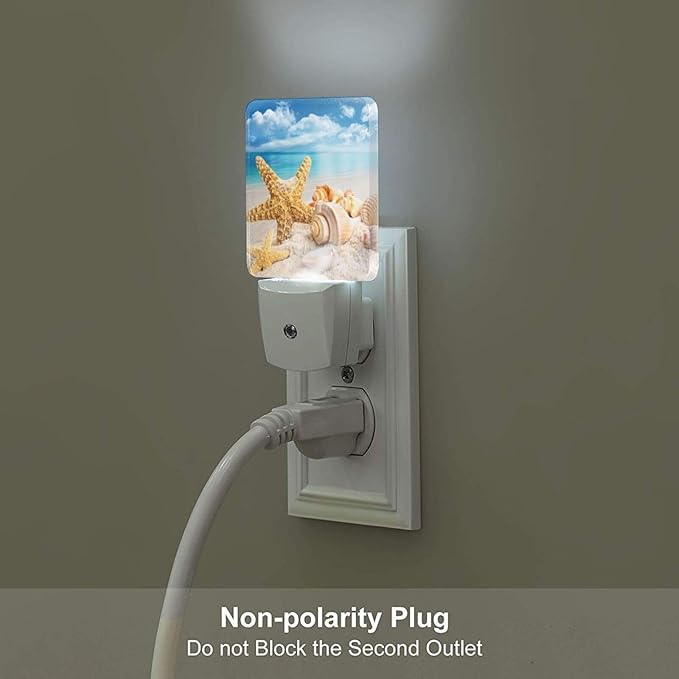 Beach Shell and Starfish Conch Night Light,Plug-in Nightlights Auto Sensor Night Lamp Dusk-to-Dawn Lamp Home Decor for Nursery Children Girls Boys