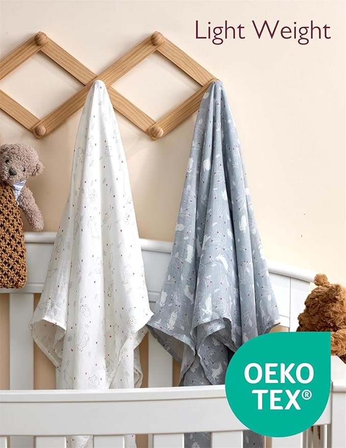- 【Large Size Muslin Blankets Can be Folded Creating Different Warmth】 The size of Momcozy 47''x47'' swaddle blanket is larger than most receiving blankets which can help mothers a lot when swaddling babies, super comfortable and stay cool in summer, huge enough and just double or triple it up for another layer of warmth creating a thicker and warmer wrap for the winter. Suitable for all seasons, warm in winter and no hot sleeping in summer.