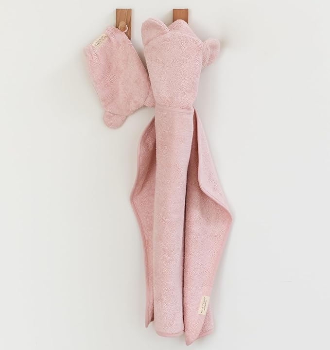 Bella Tunno Baby Bath Towel and Wash Mitt Set – Soft Absorbent Hooded Towels and Mitt-Style Baby Washcloths, Oeko-TEX Certified (Blush)