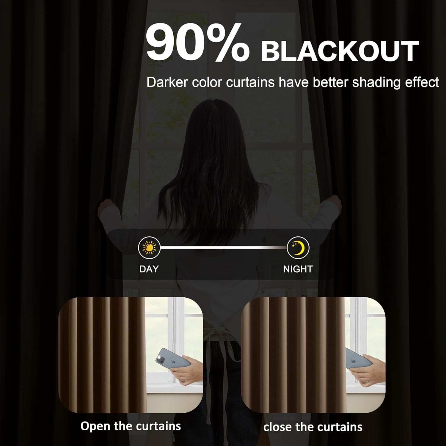 - Room Darkening: Durable polyester fabric without liner. Blackout curtains to impede 85%-95% unwanted light and UV rays(Darker color curtains have better shading effect).