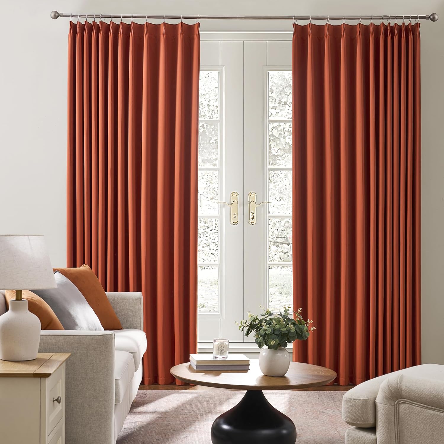 KEQIAOSUOCAI Burnt Orange Window Curtains 63 Inches Long, Block Out Room Darkening Insulated Memory Shape Boho Muted Ochre Orange Curtain for Bedroom 40 Inch Wide Each Panel,Set of 2,Pinch Pleat