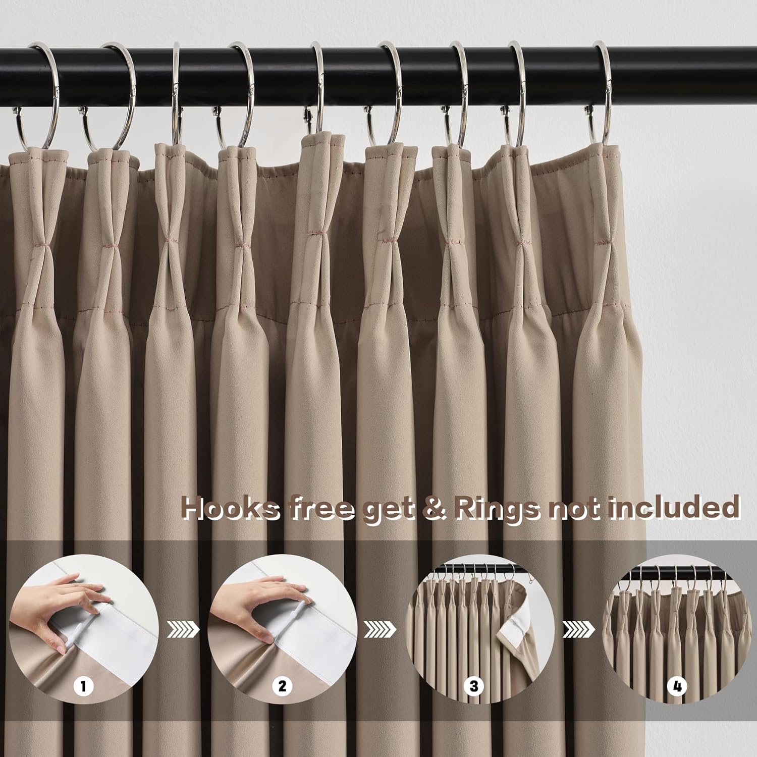 KEQIAOSUOCAI Pinch Pleated Curtains 144 Inch Long 12 FT Tall Curtains for Living Room Bedroom Thermal Memory Trained Pleated Viral Window Drapes with Hooks(Khaki,40W x 144L x 2 Panels)
