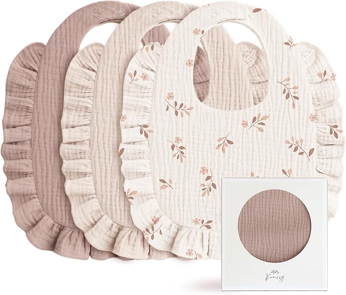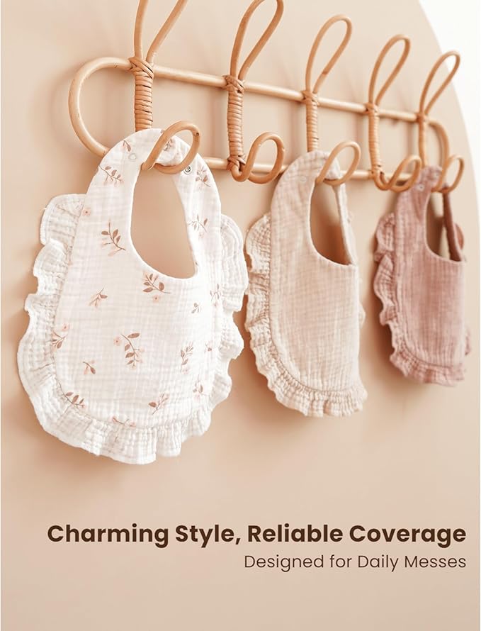 - Beautiful Edge Detailing & Versatile Styles: The bibs feature delicate ruffle trim that add a sweet and elegant touch to their design. With both solid colors and printed options, they are versatile enough to complement any outfit. Great for everyday wear, these bibs keep your little one stylish and sweet