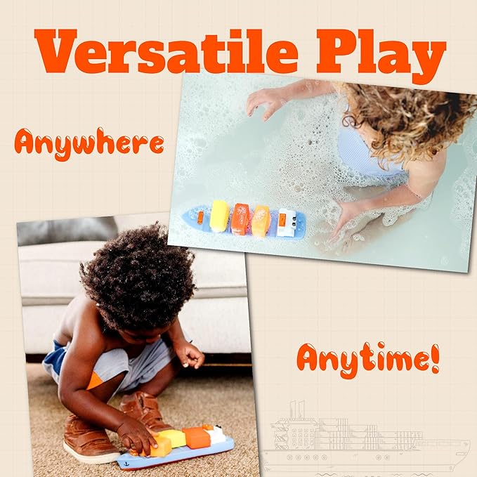 - Splash & sail – floating fun for little captains: Watch your child navigate their cargo ship toy through bubbly waters, transforming bath time into an exciting adventure while promoting play in the bathtub with toy boats for boys or girls.