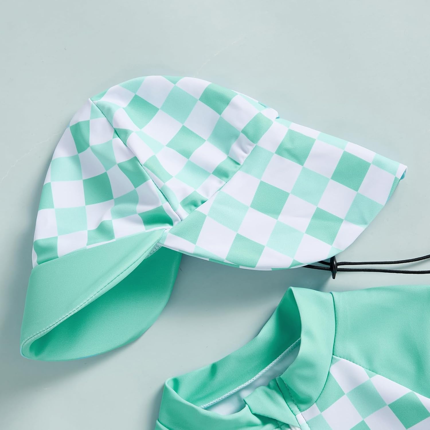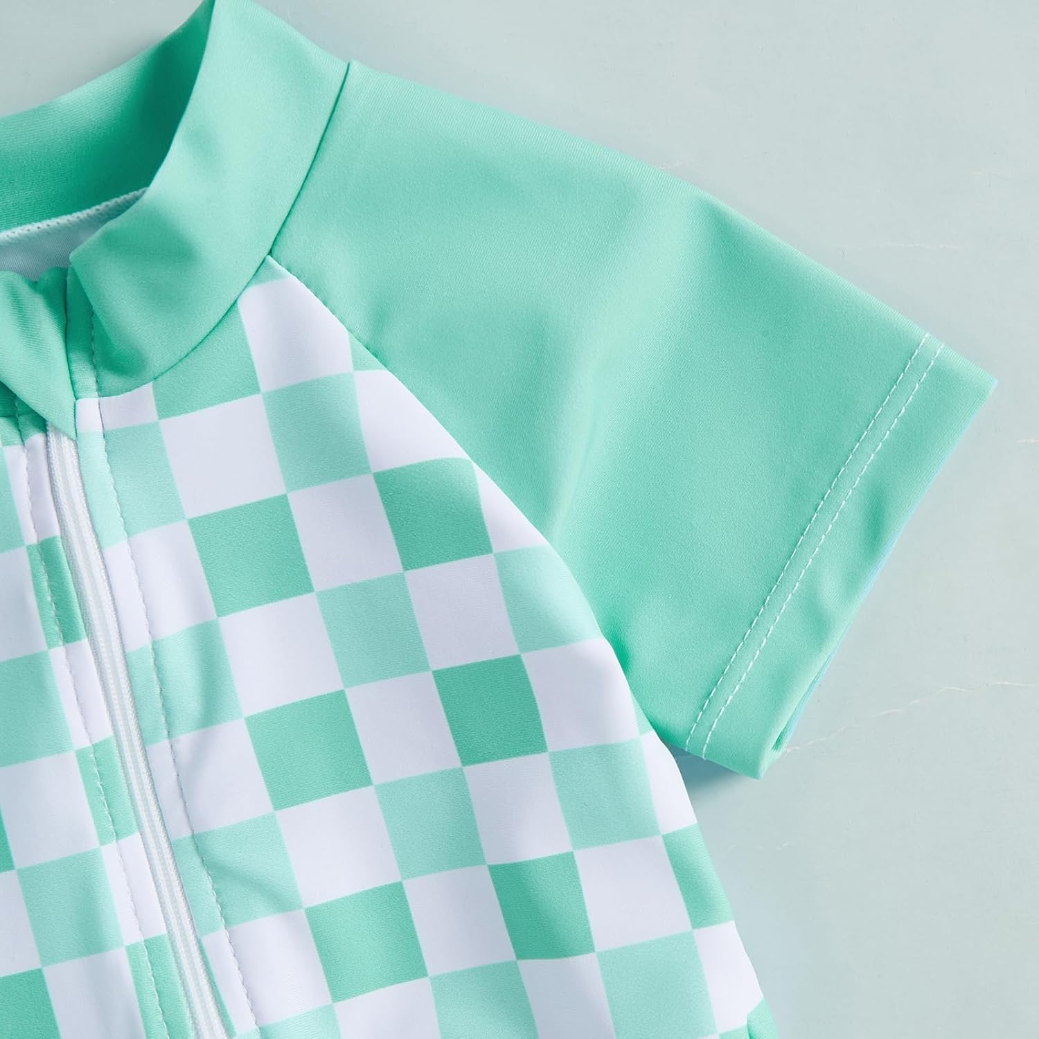 - KIDS BEACHWEAR: Baby boy rash guard swimsuit; Baby girls rash guard swimsuit,baby boy bathing suit classic plaid print, adding a fashionable touch; Short sleeves and round neck, front zipper closure, easy to put on and take off; And hat set, perfect for summer wearing