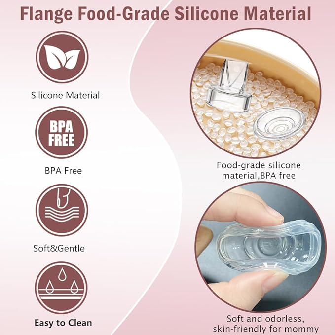 - 【Food Grade Silicone Material】: Breast pump replacement accessories are made of food grade silicone, durable, no leaking, BPA free, soft and odorless, skin-friendly for mommy and baby. soft comfortable material, Snug fit can comfort and efficient pumping