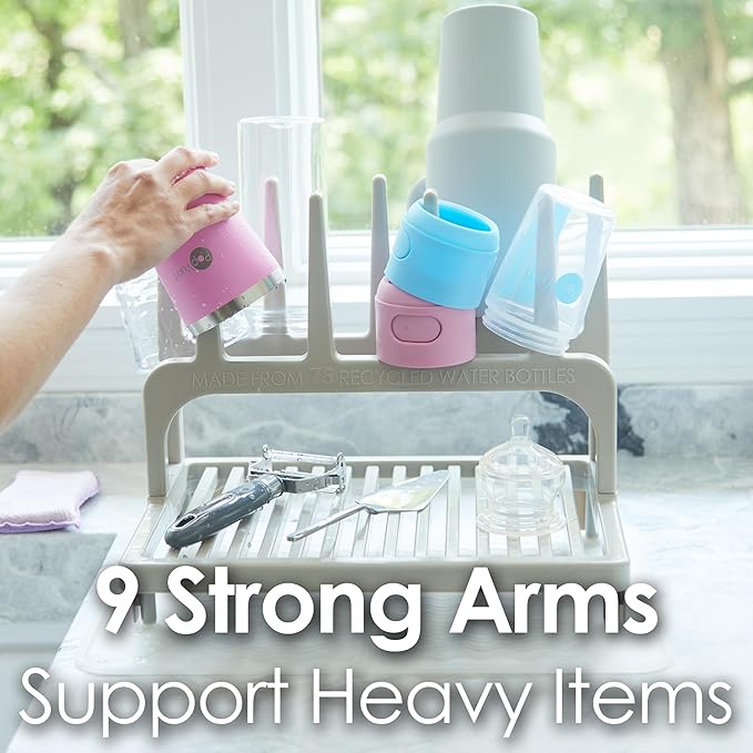 - ✅ LARGEST DRYING CAPACITY: It has the largest flat drying surface of any compact drying rack! The nine strong drying arms are spaced far apart so that they can not only hold narrow baby bottles but also hold heavy and wide 40oz tumblers.