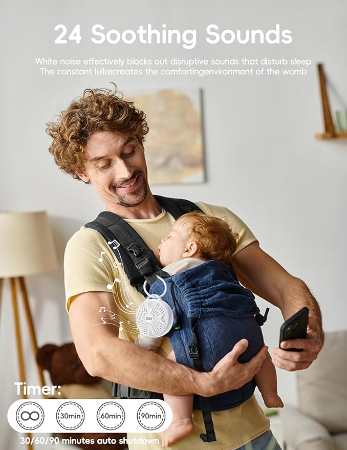 - The Best Sleep Sound Machine Designed For Baby and Parents: Baby Sound Machine designed for all things sleep, this white noise machine comes with favorable features: warm night light and colored light, 24 soothing sounds, recording function, customized timers, various volume levels, rechargeable battery, child-lock for safety, and even memory functions! This sound machine is effectively blocks out disruptive noises, making it easier for your baby and you to sleep undisturbed wherever you are.
