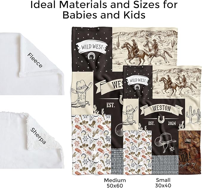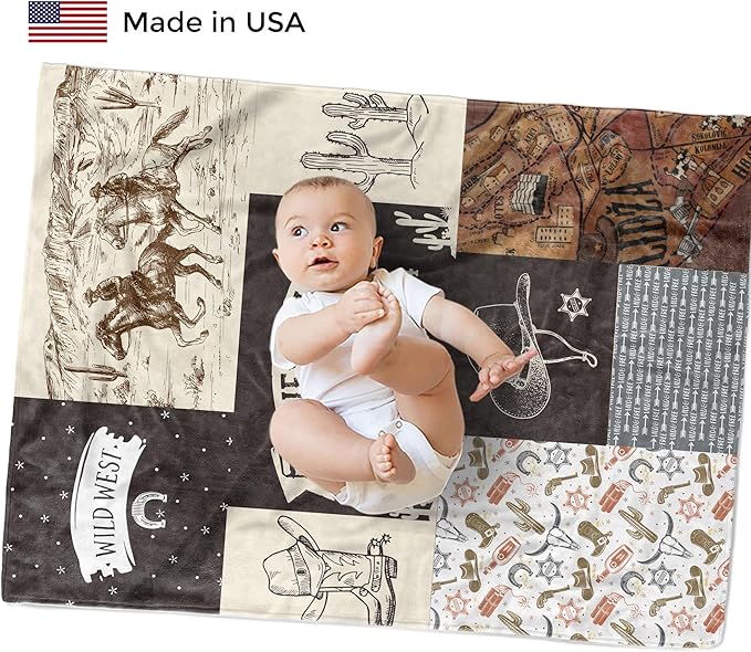 MDPrints Western Personalized Baby Blankets for Boys, Custom Baby Name Blanket, Customized Newborn Boy Gift, Woodland Nursery Decor