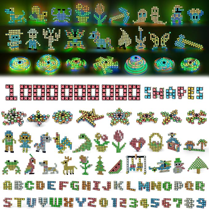 TOSY Magnet Cube 4x4 - 70 Blocks, 560 Magnets, Multipurpose: Creative Building Blocks, Transformable Fidget Spinner, Puzzle/Infinity Cube, Christmas Stocking Stuffers Gift for Kids, Glowing STEM Toy