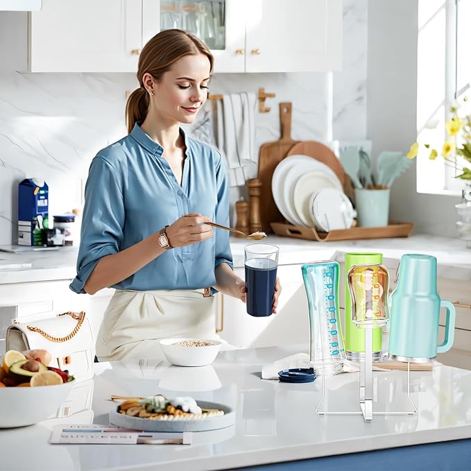 - Rapid Drying: Place the rinsed cups or bottles upside down on the metal rods of the water bottle drying rack, allowing water to drain quickly. This ensures that bottles and other items dry in a short time, saving time and keeping the kitchen tidy.