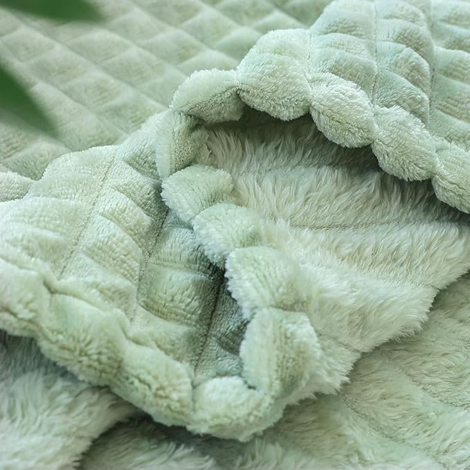 HOMRITAR Baby Blanket for Girls Boys Soft Fluffy Fleece Toddler Blanket Stereoscopic Grid, Warmer Comfort Reversible Lightweight Bed Blankets for Infant or Newborn (Light Green, 30 x 40 Inch)