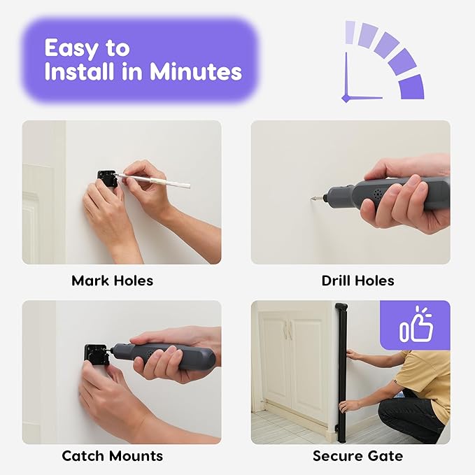 - Double Lock: This retractable baby gate features a prominent dual safety lock at the top, easily pressed and pushed to lock or unlock. Convenient for adults to operate but challenging for babies, ensuring added security