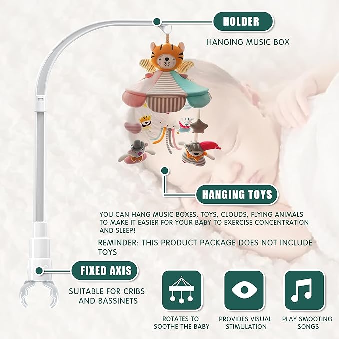 - 【Brand Integrity】We are dedicated to the research and design of baby supports.If you have any question about Our Baby Crib Mobile holder, please contact us directly by email.Thanks. Best wish for you!