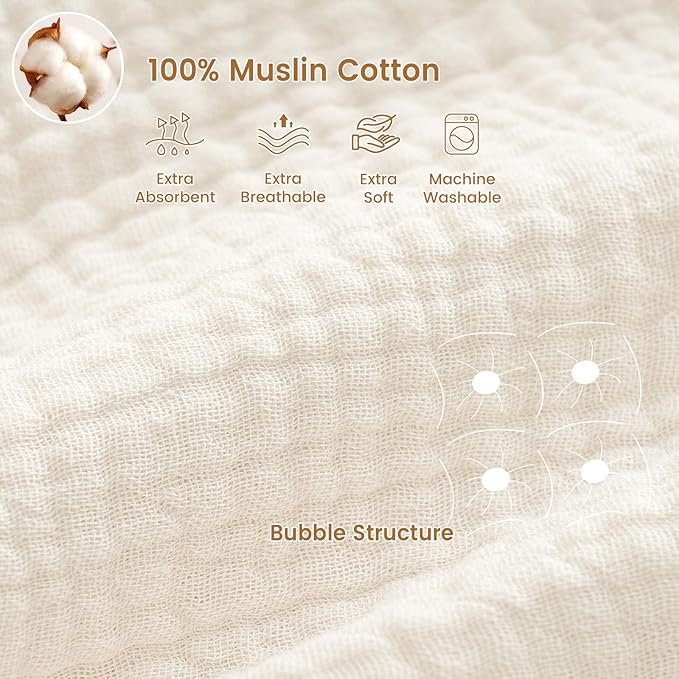 - Machine Washable and Durable: Designed for daily use, this baby muslin towel is machine washable. Wash on slow speed, tumble dry on low or lay flat to dry, do not bleach. Quick-dry fabric and durable 6-layer design mean these towels stay soft, thick, and colorful wash after wash, without pilling, shrinking, or stretching. They get softer with every wash for lasting comfort.