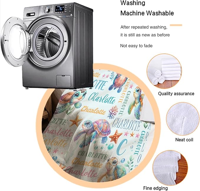 - 【Soft Flannel Blankets】 Personalized Sea Turtle throw blankets are made of premium anti-pilling flannel, soft to touch, warm to cover. Hand and machine washable, it will not shrink or fade. 5 size available: 30"x 40", 40"x 50", 50"x 60", 60"x 80",90"x 120". Perfect Custom Name blankets for baby, kids, teenager, adult,Family.