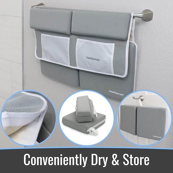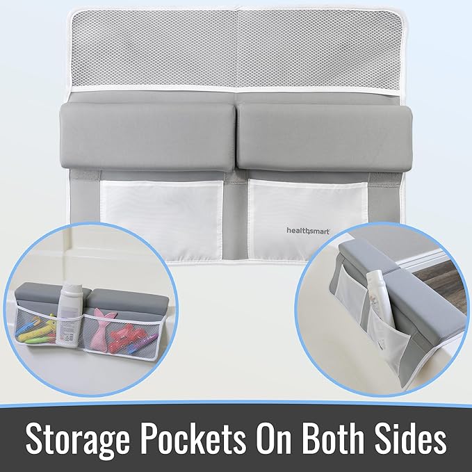 HealthSmart Baby Bath Kneeler and Elbow Rest Pad Set – Ultra-Thick, Non-Slip, Water-Resistant & Machine-Washable with Toy Organizer Pockets for Moms & Baby Registry