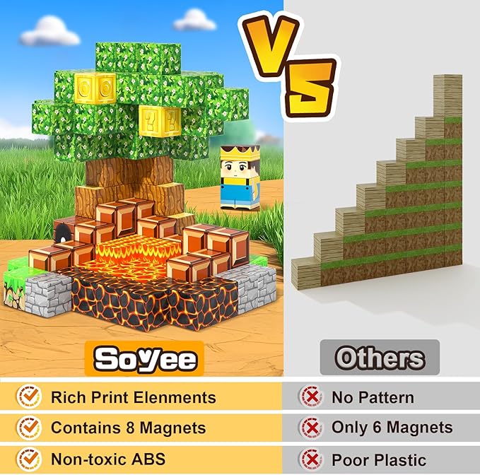 - QUALITY YOU CAN TRUST: SOYEE magnetic toys pay closer attention to the quality and playability of toys, including safe edges, UV printing, and suitable magnetism. The magnetic toys are made from ABS material and meet relevant kids toy standards and requirements. Magnetic sensory toys have no sharp edges, an 8-sided magnetic design, and powerful magnetism, ensuring kids have a safer and more enjoyable gaming experience