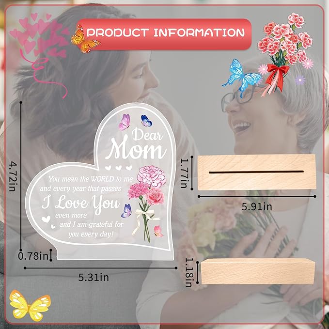 - Suitable size: mother's day gift for your motherThe size of the heart-shaped plate is about 5.32 x 5.51 x 0.12 inches/13.5 x 14 x 0.3 cm, including the insertion part of about 0.14 inches/0.35 cm; the size of the base is about 5.86 x 1.77 inches/14.9 x 4.5 cm, which is perfect to put it on the table, shelves, desks and other places, and it won't take up too much space