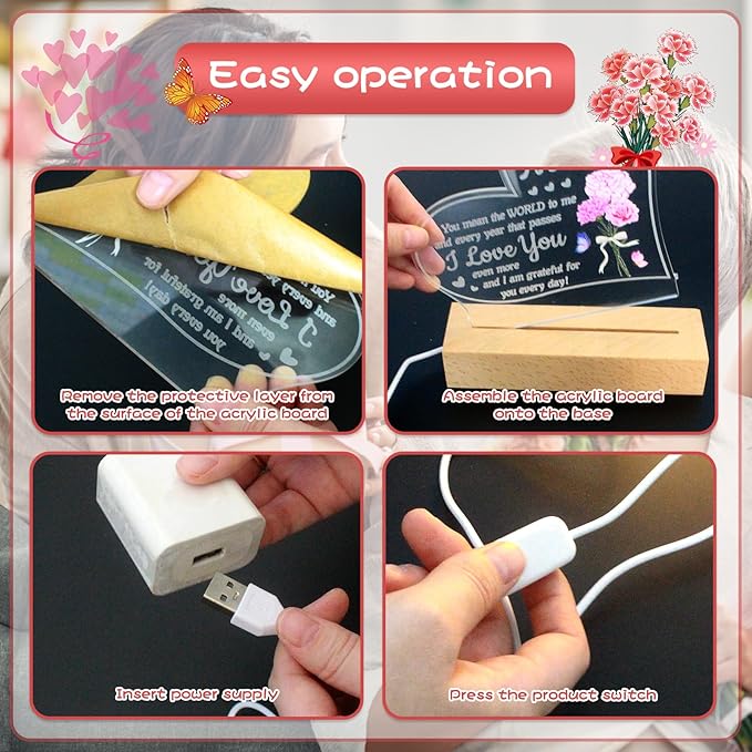 - Superior quality: mainly made of acrylic with clear prints, these mother-daughter gifts from daughters are sturdy and durable, not easy to deform or fade, no odor, can be firmly placed on the table; In addition, the LED light is soft and will not make your eyes uncomfortable, which can add a warm and sweet atmosphere to your home.