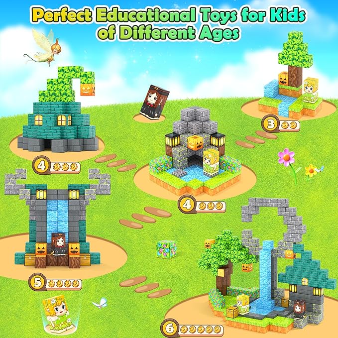 - 【PERFECT LEARNING TOYS GIFTS】A perfect gift for kids of all ages, from toddlers to kids, especially for little gamers who enjoy exploring and building in virtual worlds. Magnetic blocks inspire creativity and imagination, allowing kids to build endless designs. An ideal gift choice for birthdays, holidays, classroom activities or any special occasion!