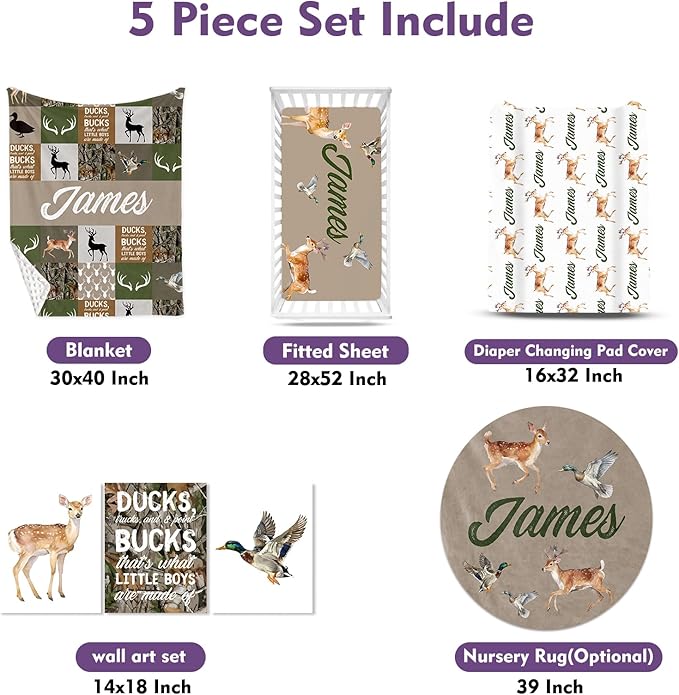 - Complete Nursery Set: Transform your baby's nursery into a dreamy and enchanting space with our 5-piece baby crib set. It includes a baby blanket, crib fitted sheet, baby rug, diaper changing pad cover and a set of coordinating wall art to coordinate your nursery dΓ©cor effortlessly.