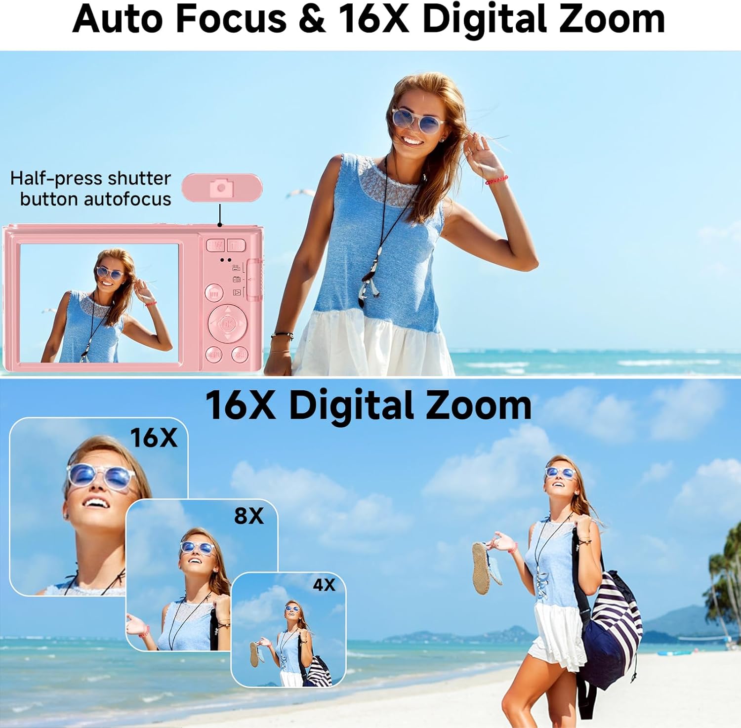 - Autofocus 4K Camera with 16x Digital Zoom - ceye digital camera for photography supports Auto-Focus, ensures no more blurry or out-of-focus shots, so you'll never miss a captivating moment. This 4K vlogging camera supports 16x digital zoom, allowing you to easily zoom in or out by pressing the W/T button during video recording and for taking still images.