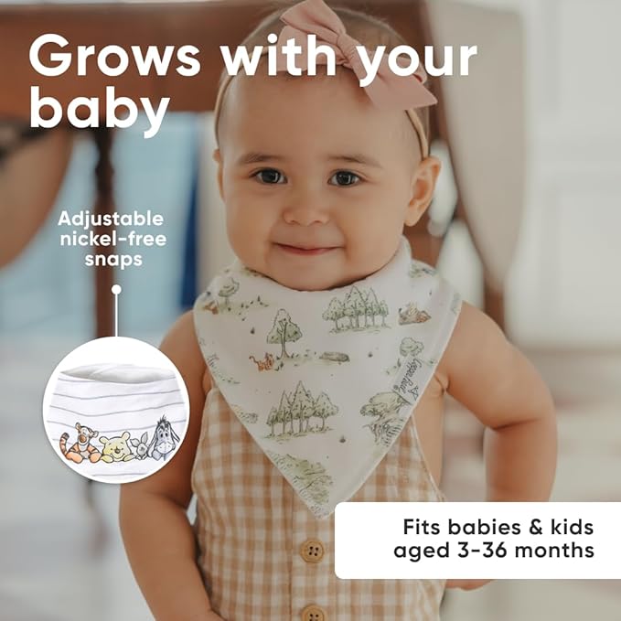 - ADJUSTABLE NICKEL FREE SNAPS; Each baby bandana bib comes with 2 nickel-free snaps that allow each bib to be adjustable in size to fit newborns and toddlers, with ages ranging from 3-24 months; The snaps are secure, making it difficult for infants and toddlers to unfasten but are easy for parents to snap on and off