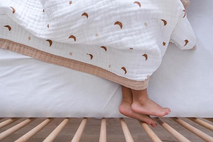 - Eco-Friendly and Sustainable: Crafted from 100% sustainable cotton muslin, this blanket is an eco-conscious choice for modern parents. Lightweight, breathable, and environmentally friendly, it’s perfect as a baby quilt, toddler quilt, or versatile everyday blanket. Combining comfort for your little one with a commitment to sustainability, it’s a thoughtful choice you can feel good about.