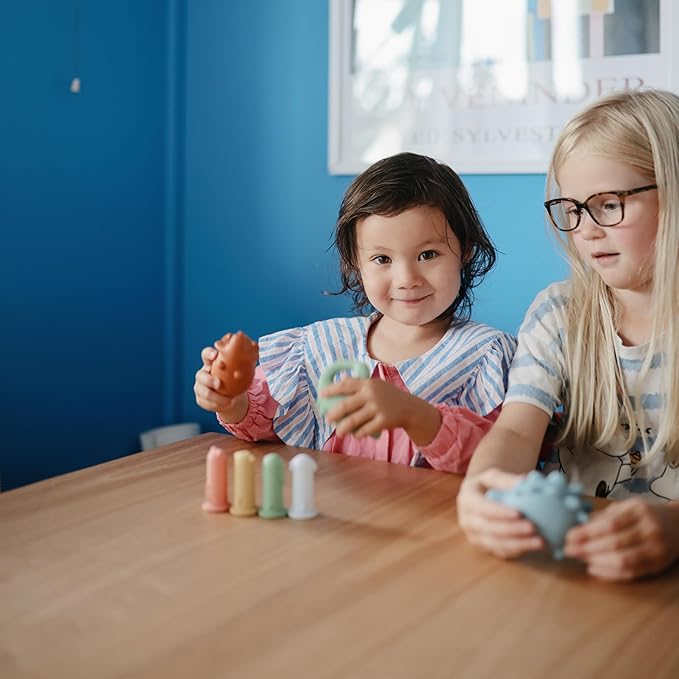 mushie Dino Bath Toys Play Set for Toddlers | 100% Food Grade Silicone | Mold Free, Pack of 5