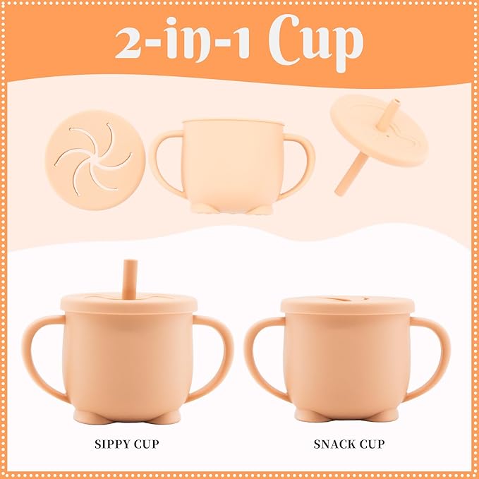 - Baby Led Weaning Supplies: Our silicone bib is designed with a deeper and sturdier pocket, making it highly effective in catching dropped food and easy to clean. The adjustable circular design is particularly gentle on your baby's skin. Our training cup is expertly crafted to fit snugly in your baby's small hands and mouth, safeguarding their developing teeth. Furthermore, the straw is equipped with a spill-proof function, aiding babies in transitioning from breastfeeding and promoting independent drinking.
