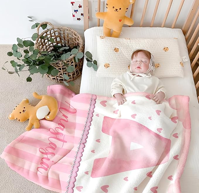 Personalized Baby Blanket for Girls, Custom Baby Blanket with Name, Soft Cozy Personalized Name Blankets for Kids, Customized Letters Blanket for Infant Toddler Birthday Christmas