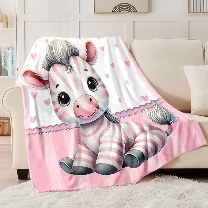 Personalized Baby Blanket for Girls, Custom Baby Blanket with Name, Soft Cozy Personalized Name Blankets for Kids, Customized Zebra Blanket for Infant Toddler Birthday Christmas