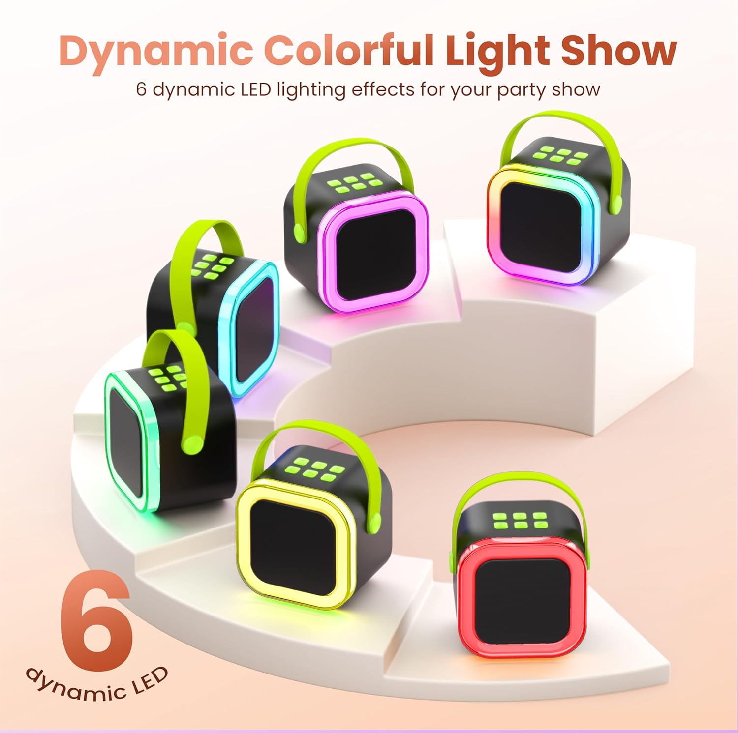 - 【5 MAGIC VOICE & COLORFUL LIGHTS】:The PA karaoke system is equipped with colorful disco lights and has an independent button to switch the lights.5 magic voice effects: monster, baby, female, male,original/accompaniment,this Bluetooth party speaker is providing endless fun and happiness for adults and kids.