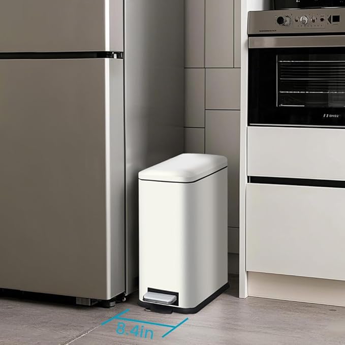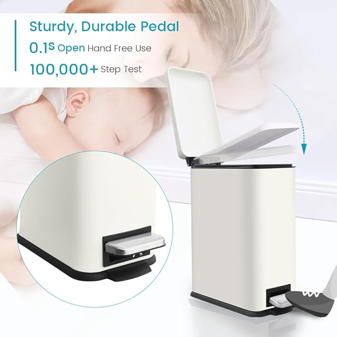 - Silent Close Lid Technology: Say goodbye to noisy trash cans! This skinny trash can is equipped with a silent close lid mechanism, ensuring a smooth and quiet closing every time. This feature is perfect for families with small children or pets, as well as those who appreciate a peaceful home environment