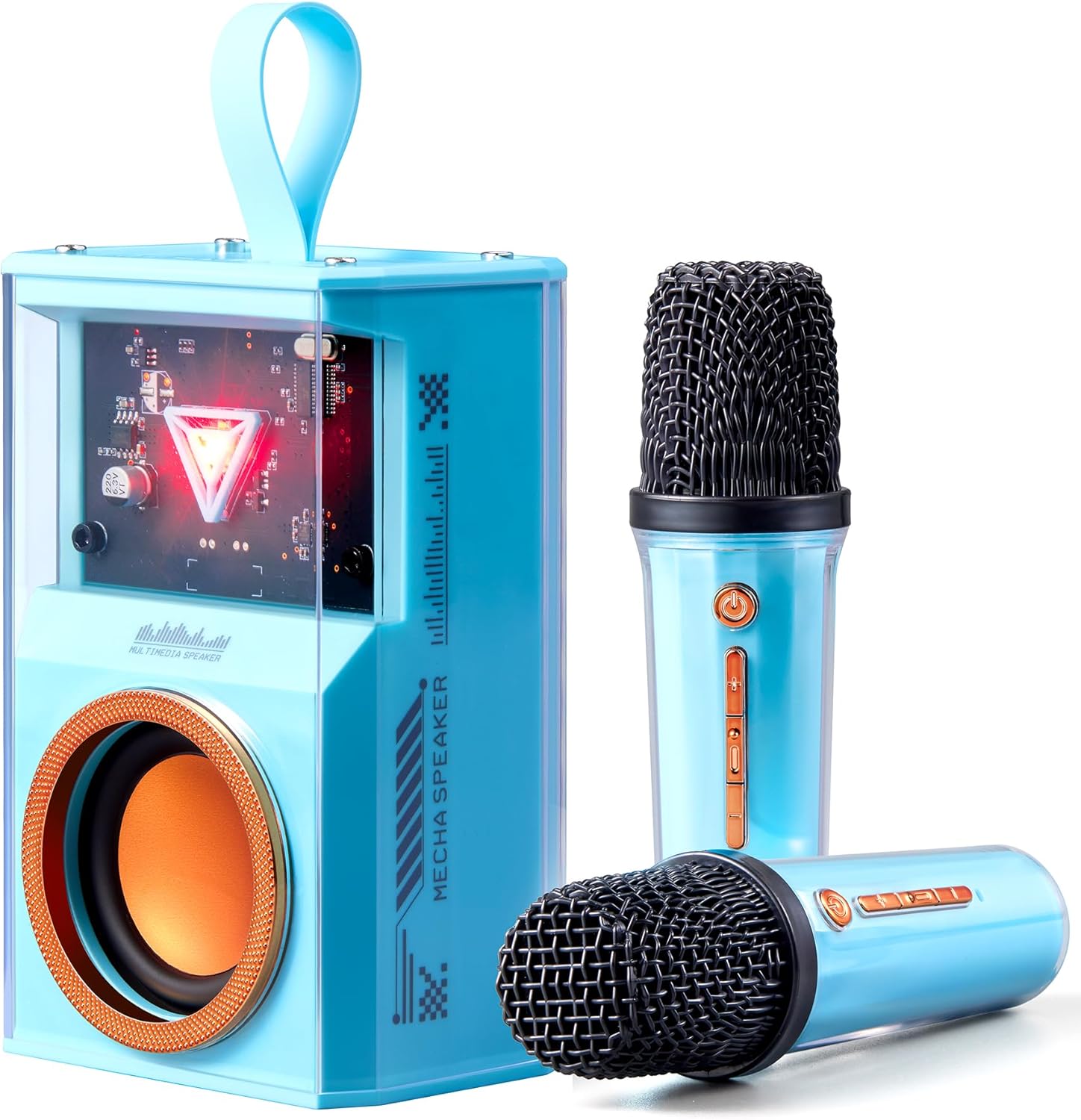 Karaoke Machine for Kids & Adults, Portable Bluetooth Mini Karaoke Speaker with 2 Wireless Microphone and Lights, Birthday Gifts for Girls & Boys, Toys for Girls, Family Home Party (Sky Blue)