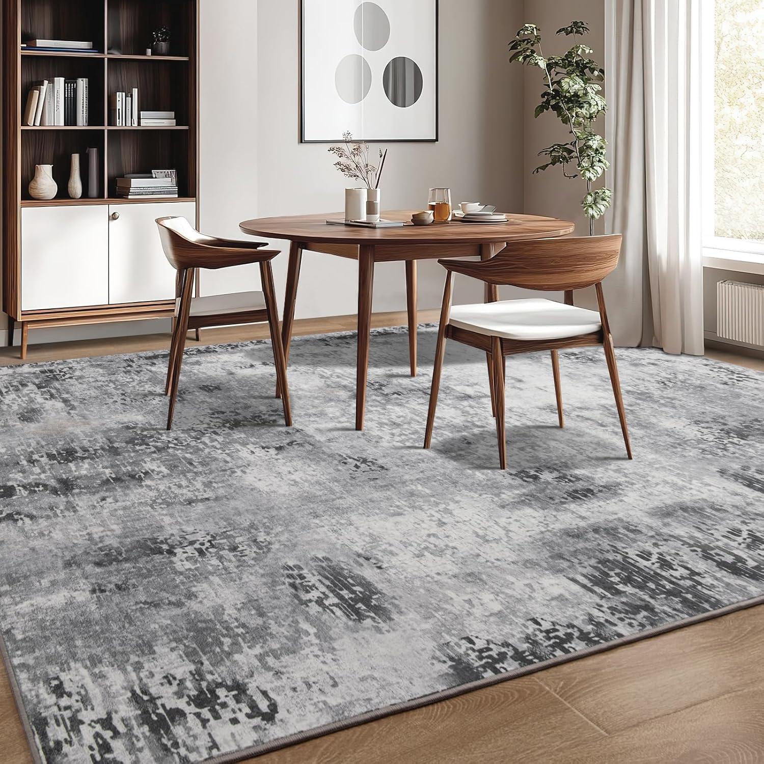 - Washable Rugs 5x7:Modern abstract gray print rugs can be machine washed, vacuumed, and cleaned with a broom or rag. Keep this easily washable carpet looking fresh daily with a vacuum cleaner or a swift wipe, and the innovative one-piece machine washable rug makes cleaning your home easier