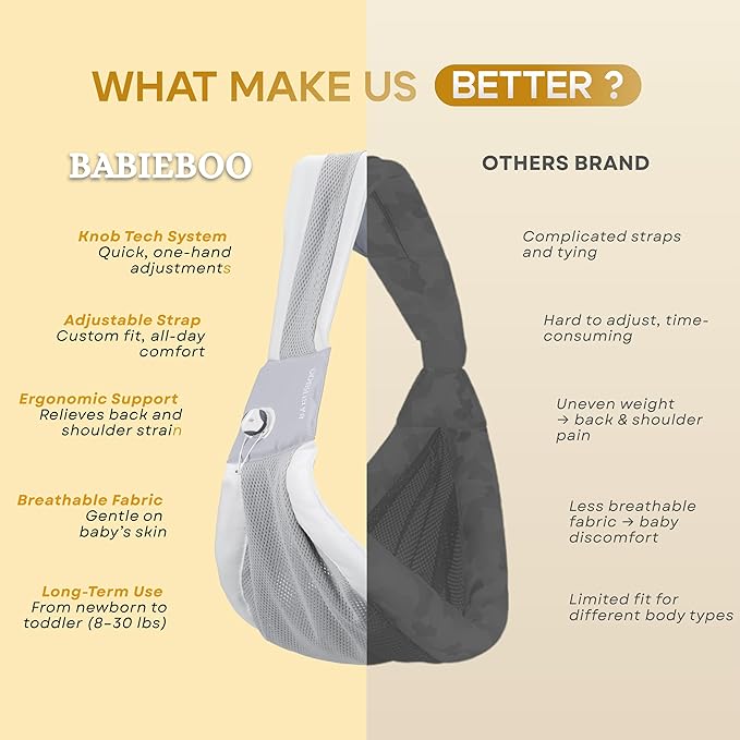 - FASHIONABLE & BREATHABLE: The BabieBoo Sling Carrier combines style with function. The trendy design and color options boost your confidence while the natural cotton fabric offers breathability and softness, ideal for all seasons. Its moisture-wicking and sweat-absorbent properties ensure comfort during warm days.