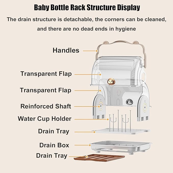 - [ Baby Bottle Storage Gift ] - Upgrade Design About 14.8 x 11.6 x 11.6" Inch, Including 6 Rods Bottle Holders, 4 Teats Holders, The Bracket Is Detachable And Stable.