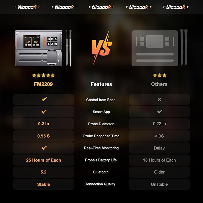 - Wireless Freedom & Real-Time Monitoring: 100% wire-free meat wireless thermometer with dual probes – monitor cooking progress anytime via free iOS/Android app, 0.95s fast response. Perfect for indoor/outdoor grilling, smoking, and overnight roasting.