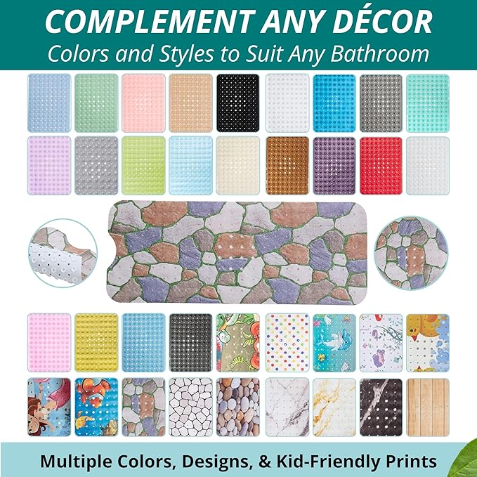 - VERSATILE DESIGNS COLORS: Choose from a neutral marble design and colors and a range of vibrant colors perfect for kids and toddlers, ensuring our bath and shower mat complements various bathroom styles. you'll love our bath mats as much as we do, we stand behind our product. giving you the confidence to make your purchase worry-free