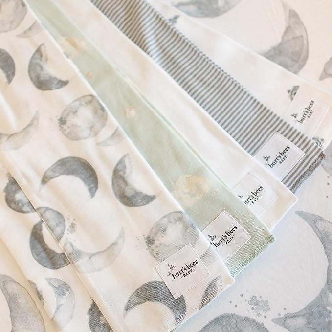 Burt's Bees Baby Infant Burp Cloths, 100% Organic Cotton Extra Absorbent Soft Fabric Drool Cloths, 5-Pack Newborn Must-Have Essential Large Burping Cloths, One Size 17 x 11.75 Inches
