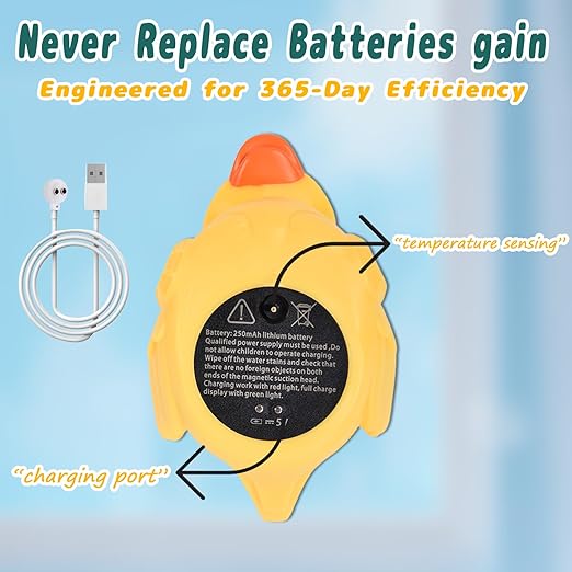 TKY Big-Eye Duck Baby Bath Thermometer - Digital Water & Room Temp Monitor with LED Alerts, Floating Bath Safety Essential for Newborns, Infants, Toddlers (Rechargeable, IP67 Waterproof)