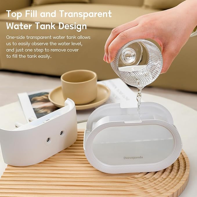 - 【Top fill and easy to clean humidifier】 The travel air humidifier just one step to remove cover and easily fill the tank, and detachable design and simple construction of the based leaves no hard to reach corners for cleaning