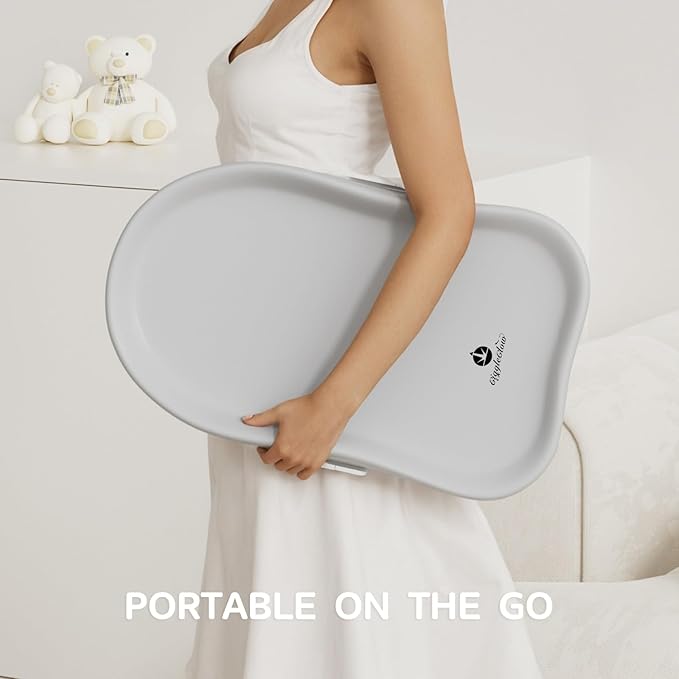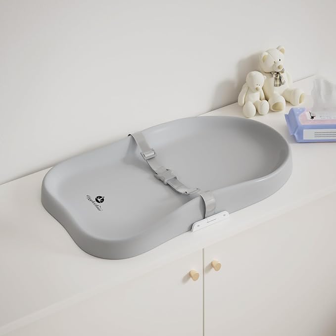 Baby Diaper Changing Pad with Adjustable Belt – Portable, Waterproof, Peanut-Shaped Design, Non-Slip Base for Table and Dresser, Grey